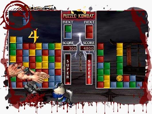 La primera de estas opciones, como su nombre indica, se trataba de un particular juego de ajedrez protagonizado por los luchadores de Mortal Kombat (nosotros decidíamos qué tipo de pieza encarnaría cada luchador) que lógicamente dejaron su letal sello en el mismo. Así, aplicando una serie de reglas especiales, nos encontramos ante un juego en el que cada una de nuestras piezas, con sus propias habilidades especiales y un tipo de movimiento concreto, debían enfrentarse al ejército rival en encarnizados combates. En cuanto a Puzzle Kombat, éste se trataba de una especie de homenaje a clásicos como Super Puzzle Fighter donde debíamos conformar bloques del mismo color para que estos, tras estallar, aparecieran en la pantalla del rival. Lo gracioso es que los luchadores que se enfrentaban entre sí aparecían en pantalla con un tono caricaturesco, aunque no por ello menos sangriento.