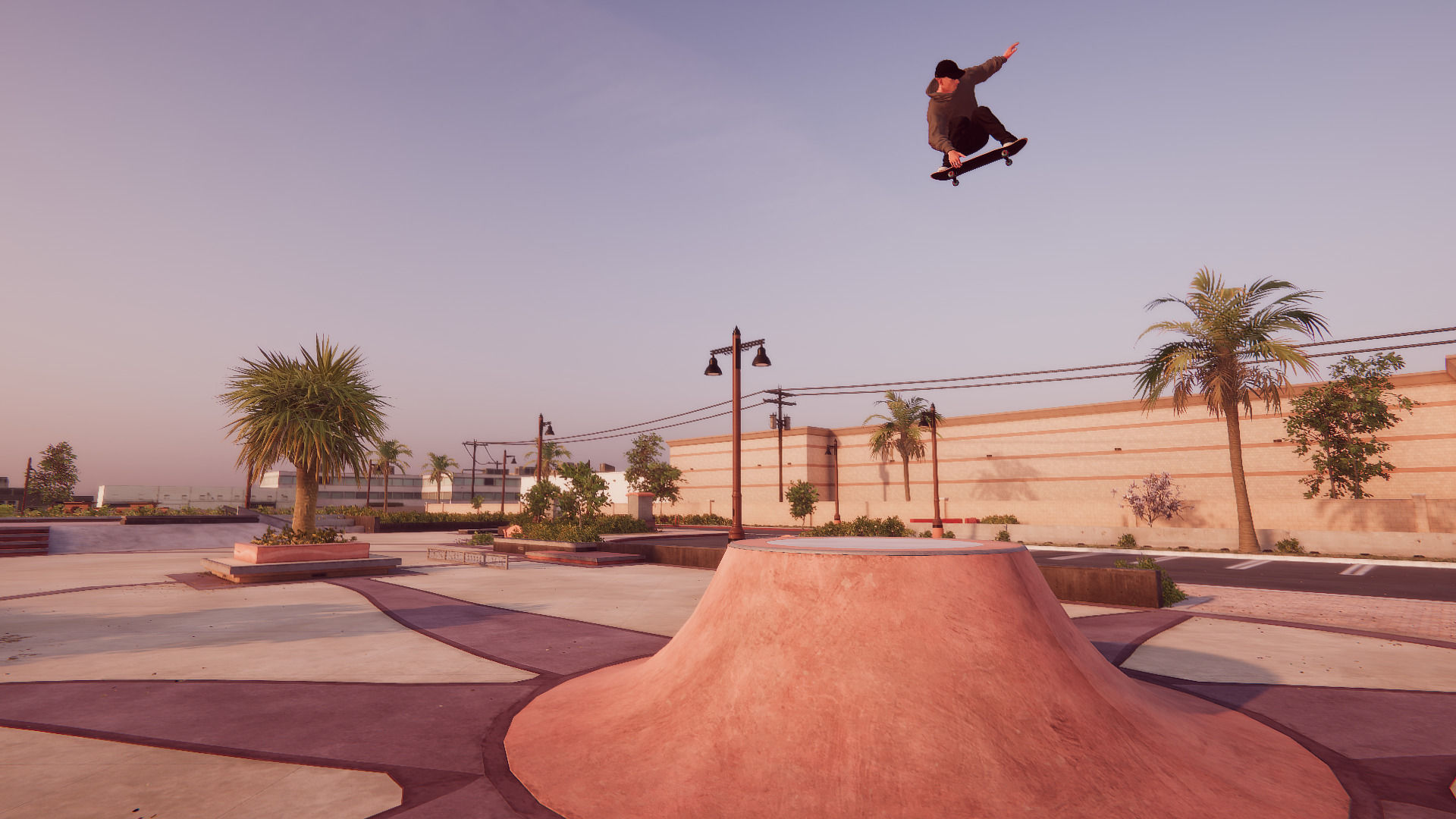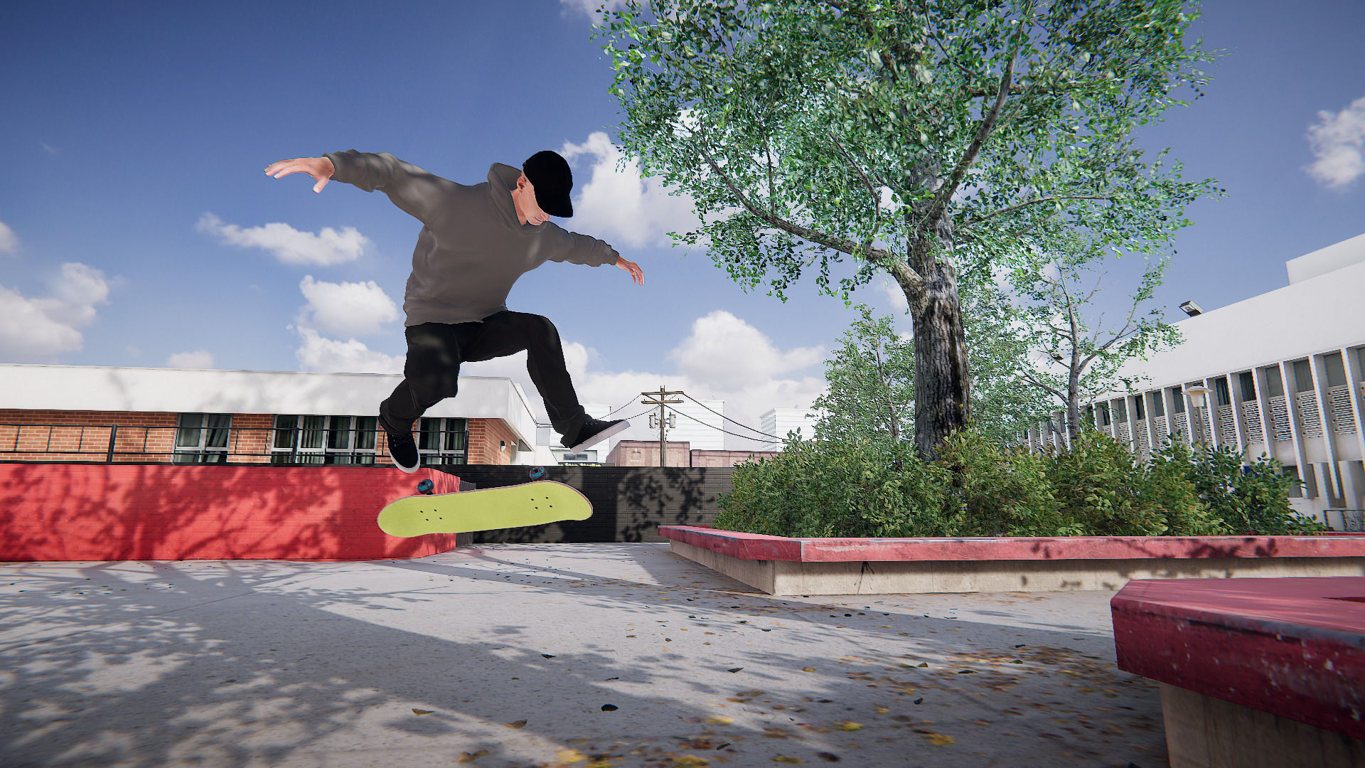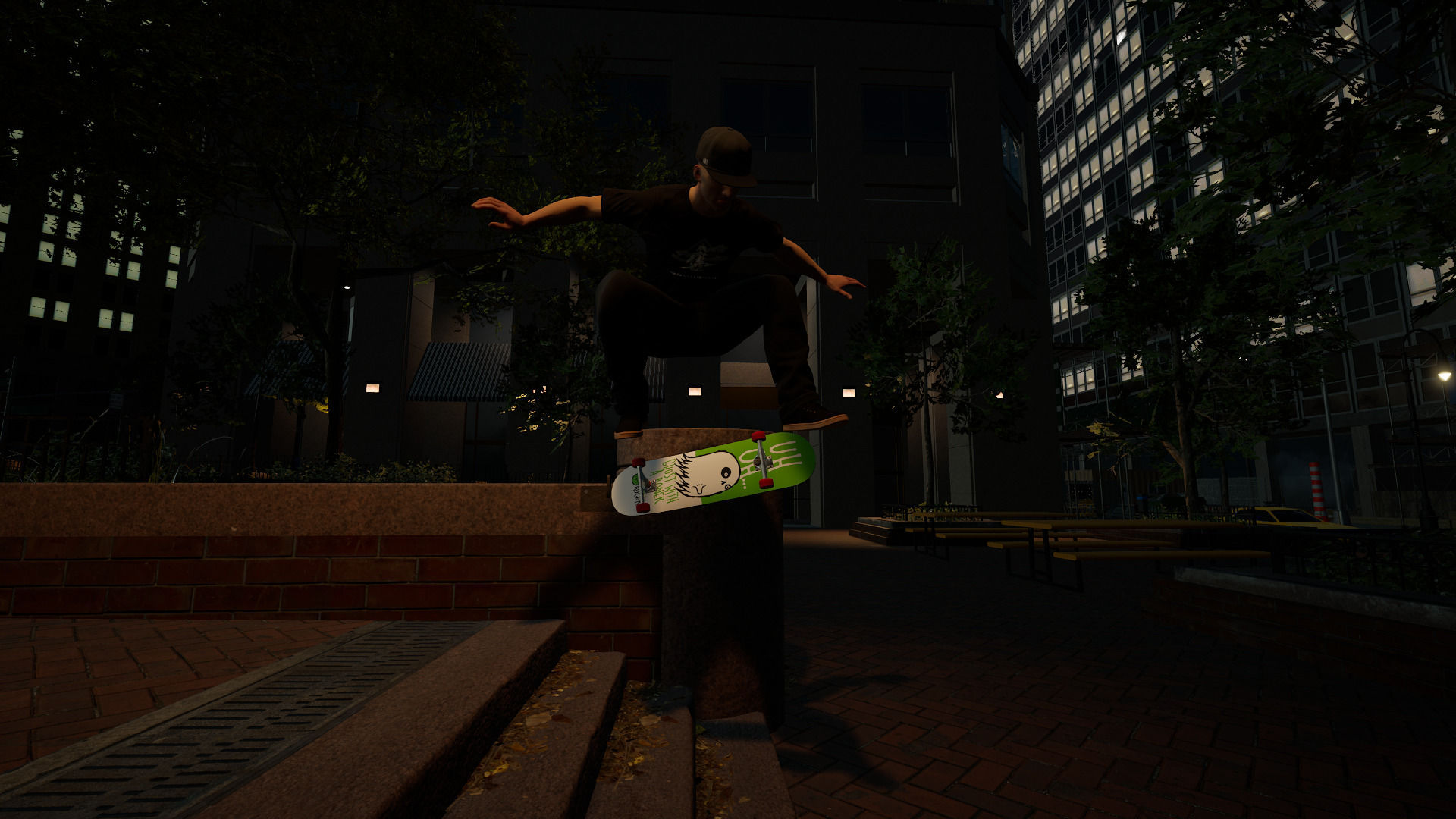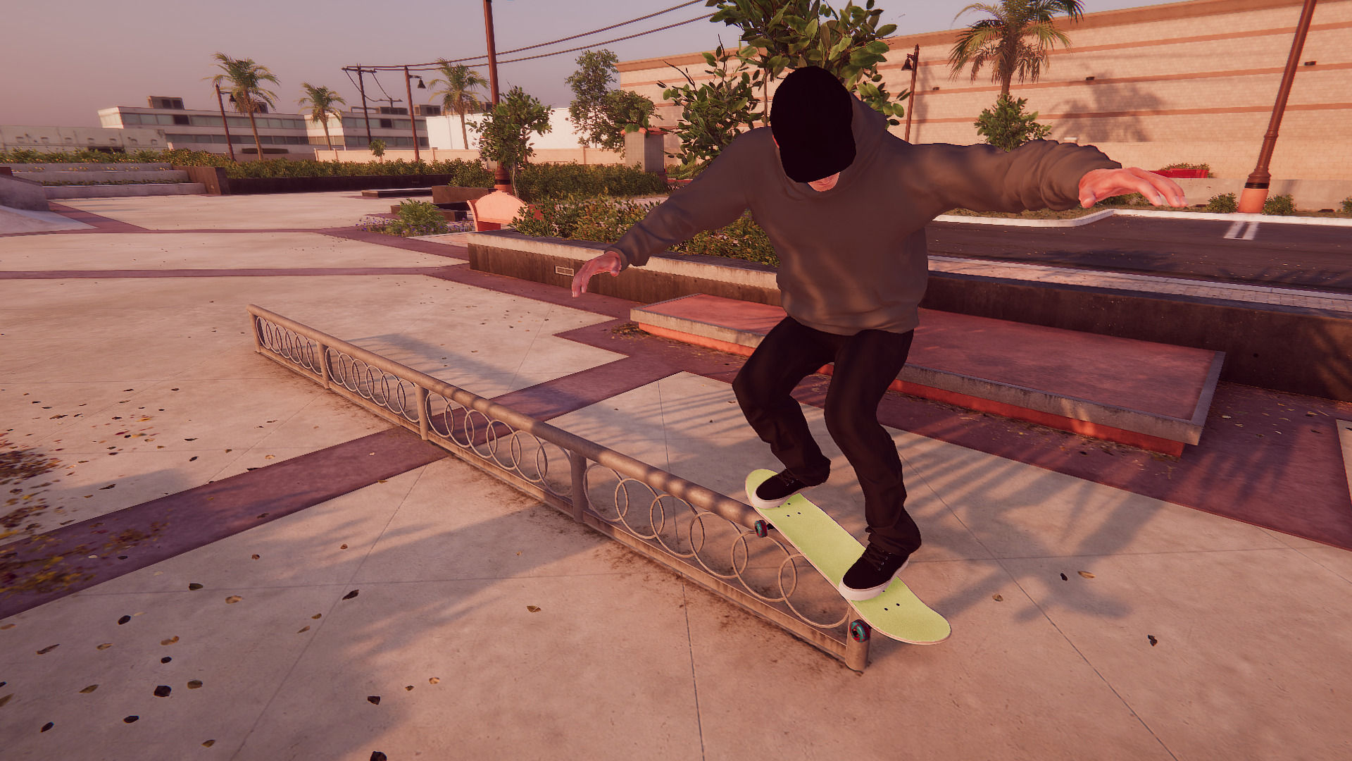 Los grinds, por su parte, requieren colocar los pies en la posición del truco que queramos realizar. Para que os hagáis una idea, si saltamos sobre un raíl o bordillo sin mover ningún stick, el juego interpreta que tenemos las piernas «flojas» y nos caeremos. Tenemos que mover el pie frontal o trasero hacia el raíl, y en función del ángulo y cómo entremos conseguiremos un truco u otro. Esto nos da la posibilidad de modificar el truco según grindamos. Los grabs están presentes pero son un tanto experimentales por el momento. En este título podemos bajarnos de la tabla e incluso saltar para movernos por el escenario.