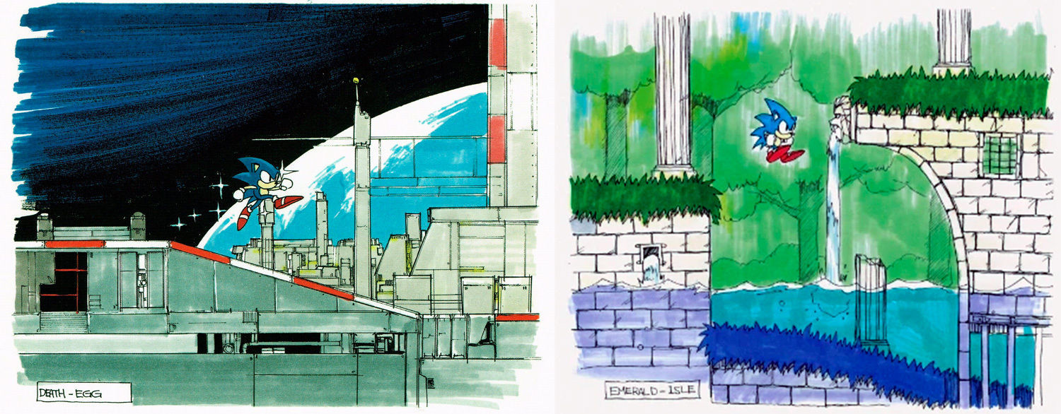 Hubo otras ideas de supervillanos como un demonio, pero Eggman seguía conquistando al Sonic Team. Y para reforzar el concepto de rebeldía y juventud, a Sonic se le pensó incluir en una banda de música –sólo como parte de una ilustración para menús de sonido-, grupo en el que estaba Vector, que luego sería rescatado en Knuckles’ Chaotix. El resto de personajes no aparecieron en juegos, pero sí en cómics. La animación prevista para esta escena que estaría en el menú oculto de selección de nivel no se hizo por falta de tiempo, así que al final a cambio se introdujo el hoy mítico coro de Sega al inicio del cartucho. Ese sonido ocupó una octava parte de la memoria total del juego, 4 megas, un derroche que fue una buena idea porque fue lo primero que la mayoría de usuarios de la consola escucharon al adquirir la plataforma.