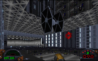 En fin, un sinfín de opciones que hacían que el juego fuera de lo más divertido. Su jugabilidad era muy parecida a la de Doom. Debíamos recorrer escenarios enormes para encontrar las llaves o los mecanismos que nos llevarían a la siguiente zona. También teníamos decenas de enemigos que abatir y un sinfín de zonas secretas que encontrar. Los elementos de plataformas dotaban al juego de variedad ya que no siempre debíamos estar disparando a los enemigos. También nos encontrábamos con los típicos puzzles de mover cajas para abrir nuevos caminos, etc. En LucasArts emplearon el motor gráfico de Doom 2 para recrear todos los ambientes del juego: teníamos naves como la de Jabba el Hutt e incluso, podíamos visitar la nave insignia de Darth Vader, el Executor. Todo poseía una apariencia bastante consistente, sobre todo teniendo la época en la que se lanzó el juego. Los enemigos aparecían en grandes oleadas y había montones de elementos móviles que ayudaban a meternos de lleno en la aventura.