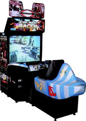 Posiblemente el mejor juego basado en los Pod Racer, quedó inédito en el mercado doméstico al convertir Lucas misma su juego para N64 y PC a DreamCast. Una auténtica pena, puesto que la Naomi que alberga Star Wars Racer pone cuatro circuitos del original con muchos más elementos y sobre todo manteniendo la tasa constante de 60 cuadros. Técnicamente superior a la mediana secuela en PlayStation 2, es otro de esos juegos vetados por LucasArts para convertirse en consola doméstica al igual que Trilogy. En fin, sólo queda la recreativa, terriblemente difícil de jugar por lo costoso del mueble, pero totalmente espectacular y posiblemente el mejor juego realizado con el Episodio I como contexto.