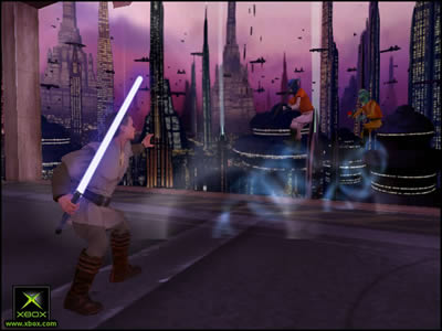 Obi Wan, o como destrozar sin compasión una licencia interesante. La gente de LucasArts anunciaba que este título, que en un principio aparecería en PC, sería exclusivo de Xbox. Los usuarios europeos no tardamos en "disfrutar" de esta exclusividad ya que el juego se lanzó el mismo día que la consola. Nuestras andanzas comienzan en Coruscant, capital de la República Galáctica. Encarnamos al aprendiz de Jedi Obi Wan Kenobi y nuestra misión como Padawan será la de investigar unos extraños sucesos ocurridos en el planeta ciudad. A lo largo de la aventura iremos descubriendo nuevos enemigos hasta llegar a lo acontecido en "La amenaza fantasma". Por tanto, nuestros enemigos serán los temibles moradores de las arenas de Tatooine, los droides de la Federación de Comercio y como no, toda la chusma que se encuentra en los bajos fondos de Coruscant.