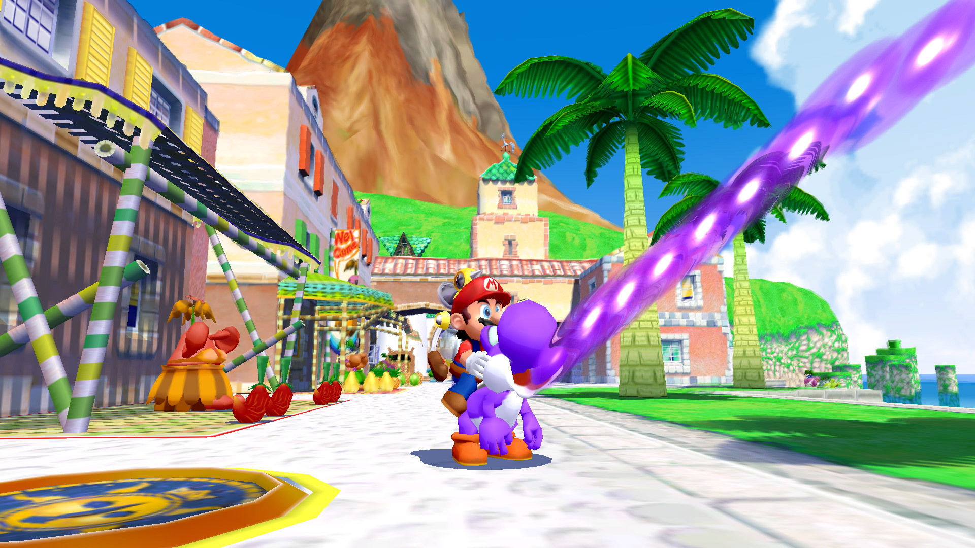 Así pues, en 2002 recibimos Super Mario Sunshine para GameCube, un título de plataformas 3D con una premisa muy parecida a la de Super Mario 64, aunque esta vez se cambió el Castillo de Peach por Ciudad Delfino, una paradisíaca ciudad costera que Mario visita junto con Peach para disfrutar de unas merecidas vacaciones. Sin embargo, a su llegada acaba siendo apresado y condenado a limpiar las manchas que hay por toda la urbe y a recuperar los soles que sirven como fuente de energía.