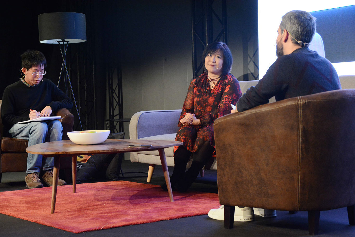 Shimomura, mucho más risueña y extravertida de lo que es habitual en los creadores japoneses, se ganó a los asistentes al festival por su expresividad, la seguridad con la que se mueve y su espontaneidad.