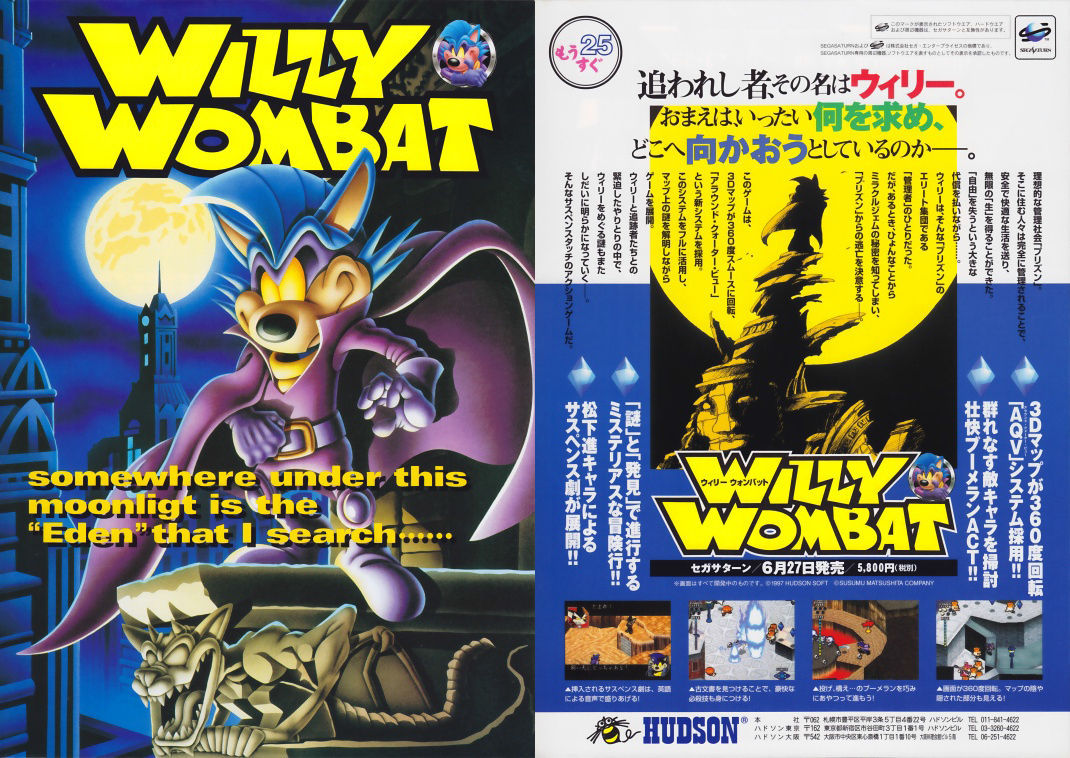 Cerny encargó a Naughty Dog la creación de un plataformas 3D, con el objetivo de vendérselo a Sony. Rubin y Gavin llevaban tiempo barajando la creación del personaje, que estaría inspirado en el Demonio de Tasmania de los Looney Toones, pero con un toque "radical" (ya sabéis, eran los 90). Aquella criatura fue bautizada originalmente como Willie The Wombat, aunque Universal tuvo problemas para registrar el nombre. En la revista Retro Gamer, David Siller, productor y diseñador del juego, desveló que Hudson Soft ya había registrado un nombre muy parecido, Willy Wombat, para un juego de acción que estaba siendo desarrollado por Westone, y que acabaría viendo la luz en 1997 para la Saturn japonesa (jamás fue distribuido en Occidente).