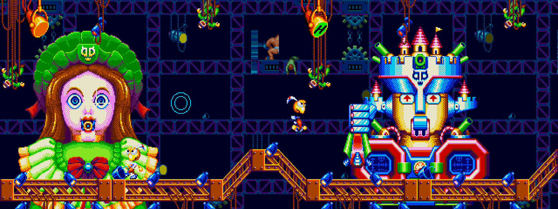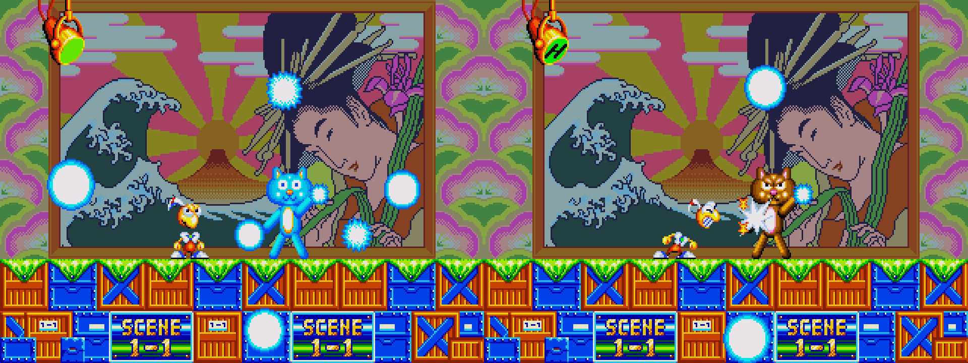 A lo largo de nueve niveles, subdivididos a su vez en diversos tramos, nuestro héroe debía recorrer unos escenarios inequívocamente teatrales, repletos de logos de Sega y Treasure, y en los que podíamos ver los bastidores e incluso a los tramoyistas moviendo los escenarios mientras nos enfrentábamos a diversos jefazos.