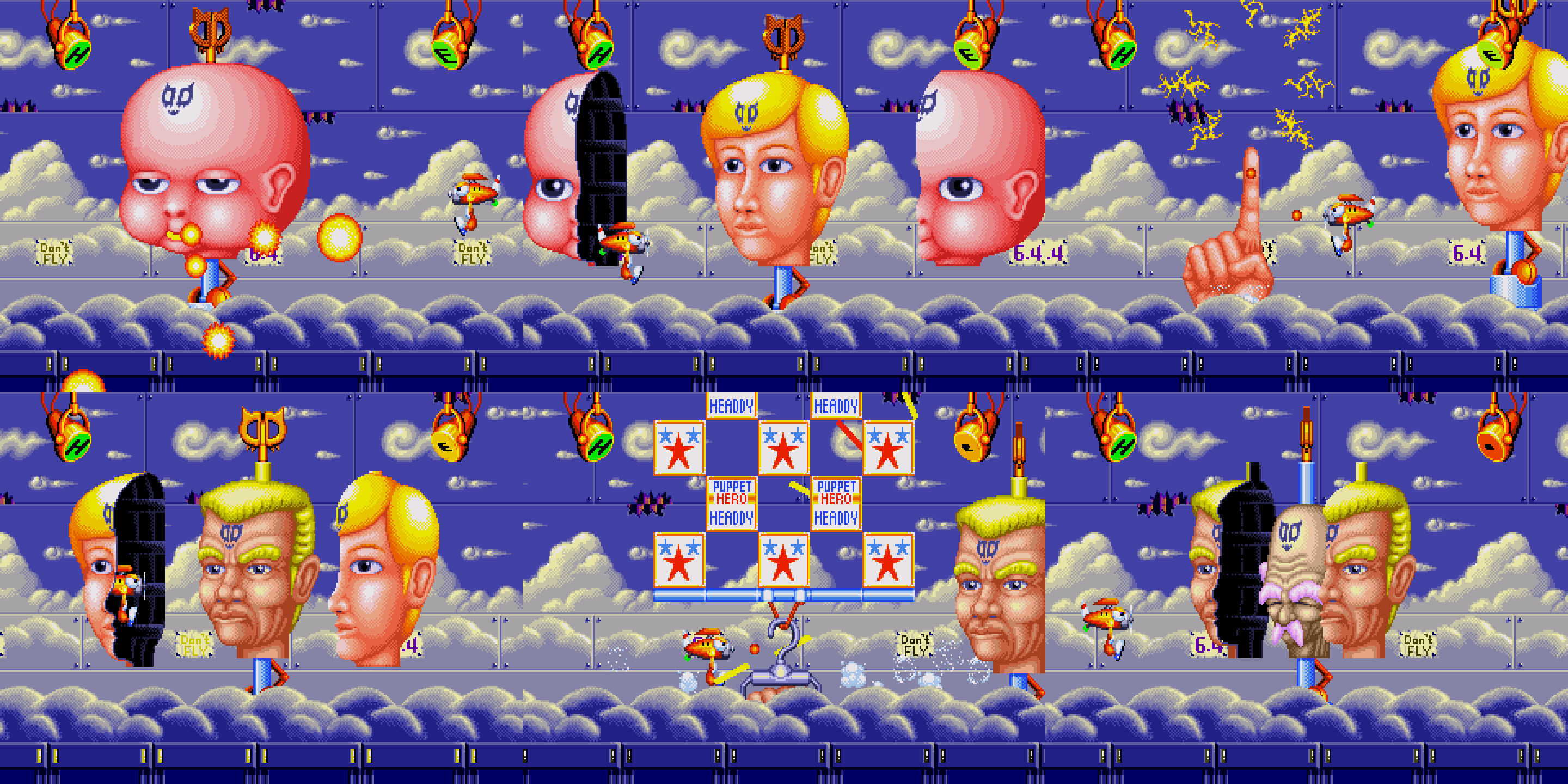 El primero de aquel glorioso lote en ver la luz (agosto de 1994 en Japón, septiembre en EE.UU., octubre en Europa) sería Dynamite Headdy, un colorido arcade de plataformas protagonizado por una marioneta capaz de intercambiar su cabeza por otras 17 distintas, cada una de ellas dotada de diferentes habilidades.
