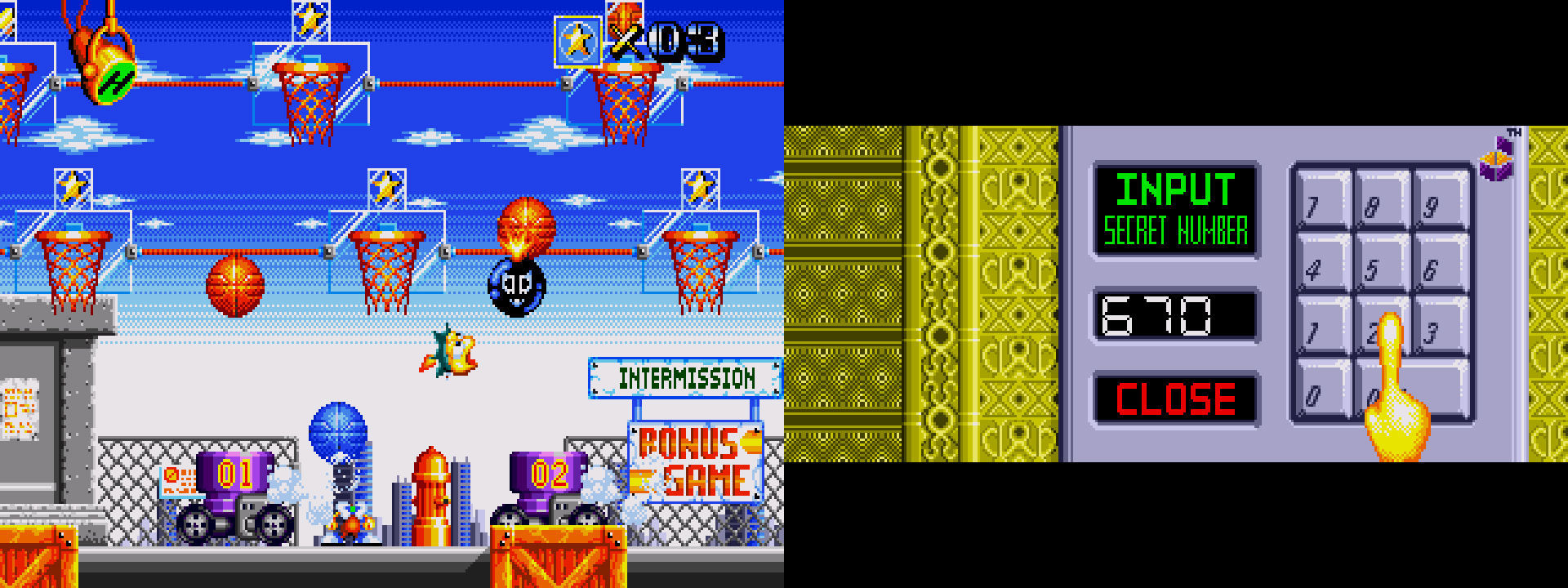 Por si no fuera bastante con llegar al final, para poder ver el auténtico epílogo, consistente en un combate contra el dueño del teatro, era preciso superar con éxito, al menos en cuatro ocasiones, la base de bonus del juego, consistente en encestar en unas canastas de baloncesto. Cada vez que teníamos éxito, el juego nos daba un número (que siempre cambiaba en cada partida). Tras superar una de las secuencias de créditos más largas de la historia de Mega Drive, aparecía una pantalla en la que debíamos introducir correctamente los cuatro dígitos que nos habían dado. ¿Alguno llegó a lograrlo? Servidor jamás pudo hacerlo.