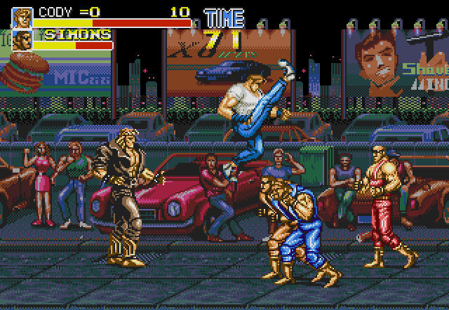 La placa CPS-1 no solo era capaz de mostrar sprites gigantescos, sino de llenar la pantalla de enemigos, en un festín de mamporros, únicamente interrumpido en dos rondas de bonus. La primera, consistente en destrozar un coche aparcado en una gasolinera, gustó tanto entre los jugadores que Okamoto y sus compañeros de Capcom decidieron recuperarla un par de años más tarde, cuando lanzaron Street Fighter II.