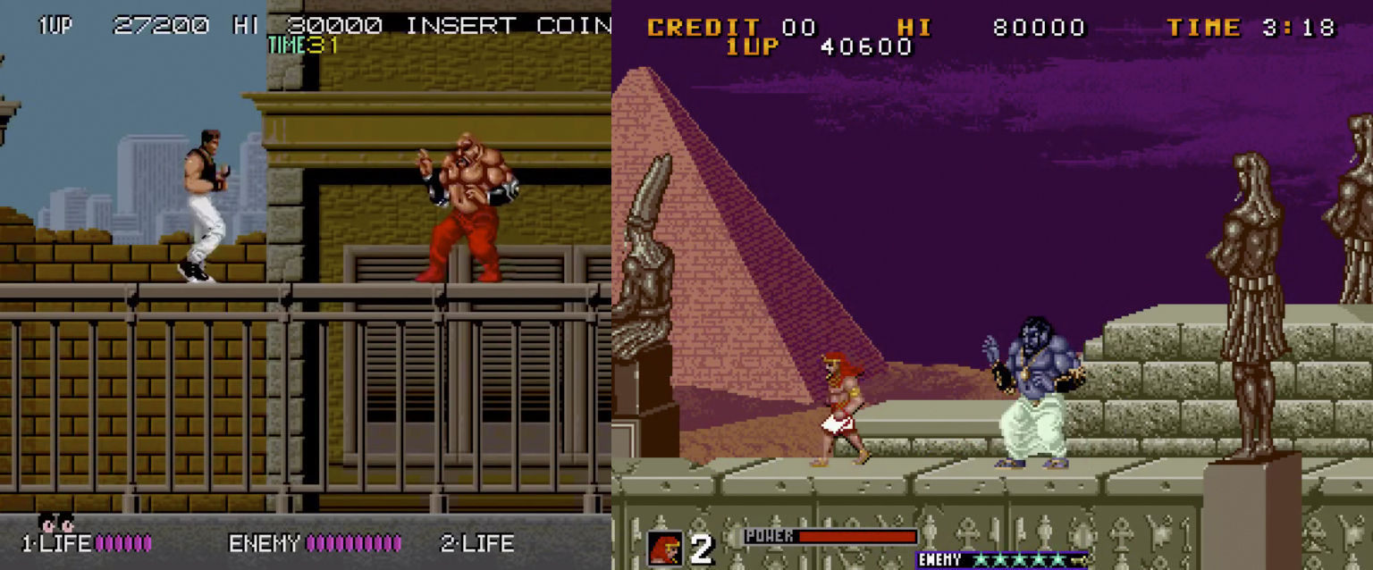 En algunos momentos, Karnov parecía la versión psicodélica de un Super Mario Bros. Nuestro héroe usaba objetos, volaba, buceaba bajo el mar… pero un ajustado límite de tiempo impedía explorar los escenarios tranquilamente, como si fuera un juego de consola. No olvidemos que la placa de Data East, como el resto de recreativas, estaba diseñada con un único objetivo: sacarnos la mayor pasta posible. Si queríamos descubrir todos los secretos y rutas alternativas del juego tendría que ser en una nueva partida, volviendo a llenar los bolsillos del dueño del bar o del salón recreativo.