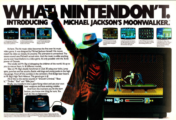 Antes de despedirnos del Moonwalker de Mega Drive, no hemos podido evitar acordarnos del tronchante texto en castellano que llevaba el reverso de la carátula, y que reproducimos íntegramente, erratas incluidas: "Puede vd, detener al perverso y taimado Mr. Big y su pandilla de bandoleros antes de que secuestren a todos los niños? ¡Naturalmente, si es Vd, Michael Jackson! ¡Dar el paseo lunar sobre los facinerosos schar el alto a los malos, y apalear a los gamberros! ¡Pelear, saltar, bailar más que ellos! ¡Moverse como sólo Michael Puede, al ritmo de ‘Smooth Criminal’, ‘Beat It’, ‘Billie Jean’ y ‘Bad’!". ¿No es maravilloso?