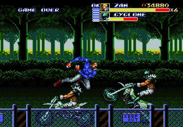 Streets of Rage 3 llegó a las tiendas apenas un año después de la anterior entrega. En enero de 1994 debutó en Japón y en abril llegaría a las Mega Drive occidentales… con censura y no pocos cambios respecto al original nipón. Desarrollado por Sega CS, esta tercera entrega pulió aun más el aspecto gráfico, sobre todo en lo referente al modelo y la animación de los personajes. Max desapareció para dar paso a un nuevo personaje, el Dr Zan, una suerte de abuelo cibernético, que acompañó a Axel, Blaxe y Eddie en una nueva, y extensa, odisea compatible con el pad de 6 botones de Mega Drive.