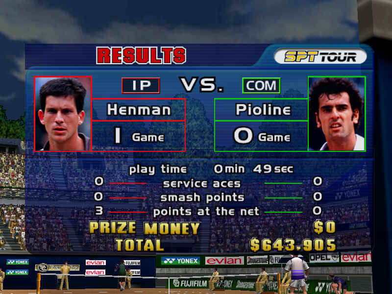 Cada victoria no solo nos permitía escalar posiciones en el ránking, sino que nos proporcionaba una suma de dinero que podíamos gastar en la tienda del juego. Más allá de la típica ropita para personalizar a nuestro personaje, en la tienda se podían desbloquear pistas extra, nuevos tenistas para los modos Arcade y Exhibición y, sobre todo, un compañero controlado por la IA, imprescindible para poder participar en los partidos de dobles.