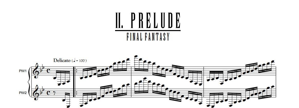 Todo comienza con una doble escalera de arpegios mayores y menores, una escalera que se entrelaza de manera ascendente y descendente cual ornamento arabesco y que Nobuo Uematsu colocó sabiamente para introducirnos en el universo de Final Fantasy, aquel juego que como bien se sabe salvó a Square en 1987 de la terrible bancarrota en la que anduvo metida. "Prelude" es la antesala a la mágica colección de partituras que veremos, una seña musical indiscutible y quizás la más importante de todas dada su permanencia.