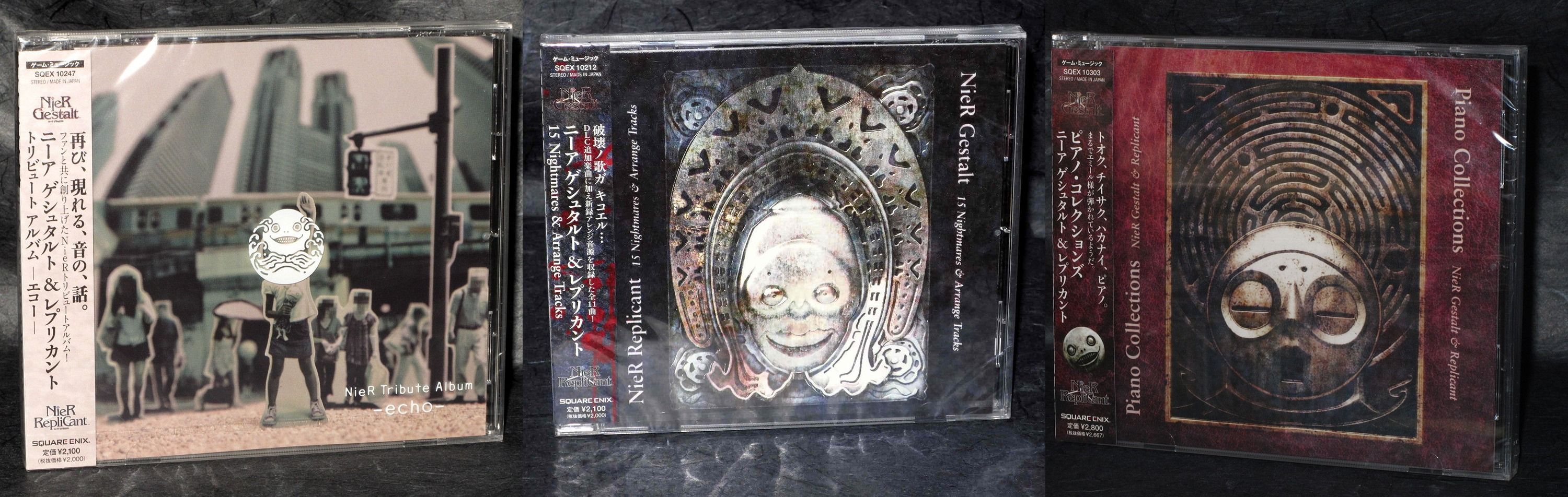 Además de la NieR Gestalt & Replicant Original Soundtrack, el álbum principal de la banda sonora, Square Enix Music distribuye la selección de arreglos del NieR Gestalt & Replicant 15 Nightmares & Arrange Tracks, su particular Piano Collections de 2012 y el CD NieR Tribute Album -echo- en el que diversas bandas hacen su propia versión de los temas. De parte de Joypad Records existen también dos EPs en clave de jazz con Sean Schafianski.