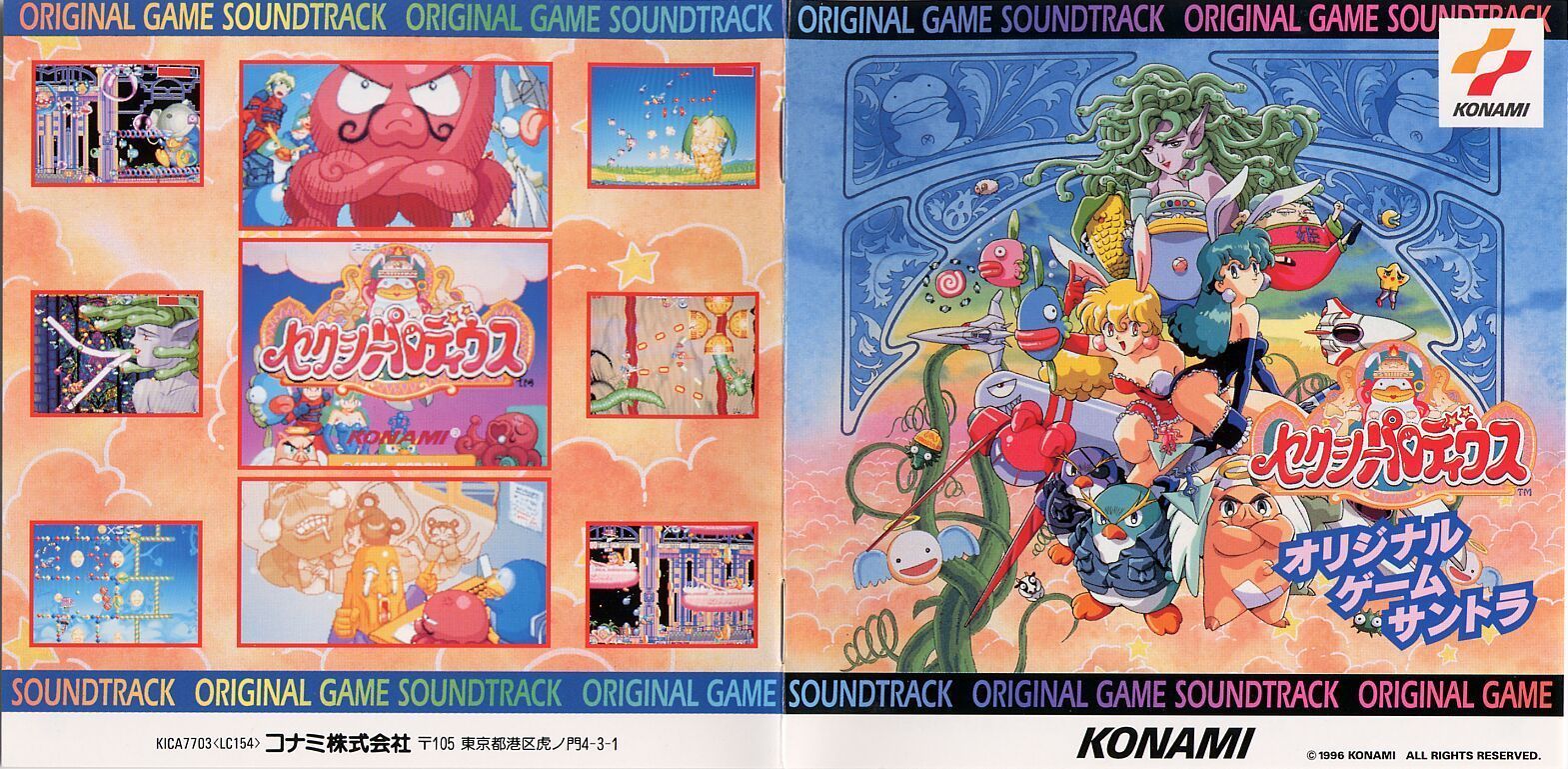 Sexy Parodius es otro de ellos, a cargo de Mayuko Kageshita –compositora en Suikoden– y Naomitsu Ariyama. Destacan temas como "Please, Help Me!" con la base del inmortal clásico Bimbo eurodisco de Bimbo Jet, "Song Speed Bath" o la danza israelí de "Lovely Otohime". Sexy Parodius Original Game Soundtrack fue lanzada por Konami en 1996 y el libreto incluye la partitura de "Departure for Sexy", basada en el "Departure for Space".