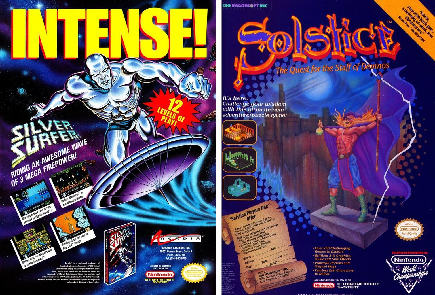 1990 sería probablemente el año que marcaría la cúspide de sus carreras. Uno de esos casos fue con el título del juego de mesa Pictionary, que jamás ha merecido el trabajazo de Tim Follin que esconde, porque… ¿quién sino él podía convertir un cartucho del montón en uno de los grandes repertorios de la consola? Claro que la cosa no quedaría ahí, porque con unos meses de diferencia saldría Solstice, toda una obra de ingeniería de sonido que se zambulle en el rock progresivo heredero de bandas británicas como Genesis, Yes, Caravan, Camel o Gentle Giant, demostrando los límites musicales de la consola de Nintendo.