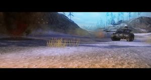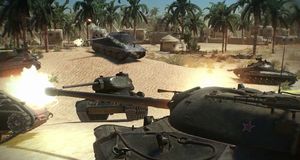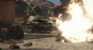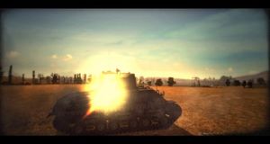 Una secuencia de combate del juego masivo online de tanques.