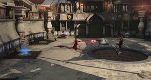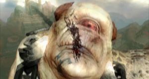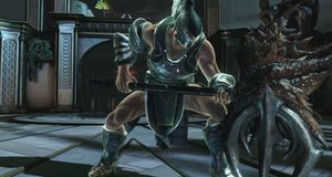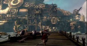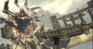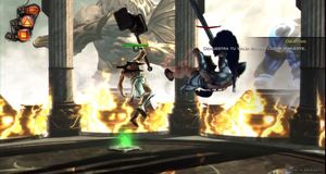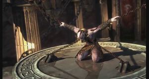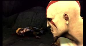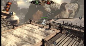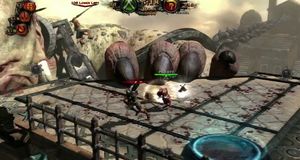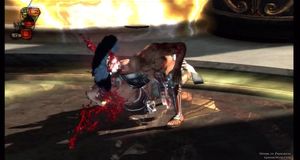 Uno de los enemigos del juego, la mantícora contra Kratos.